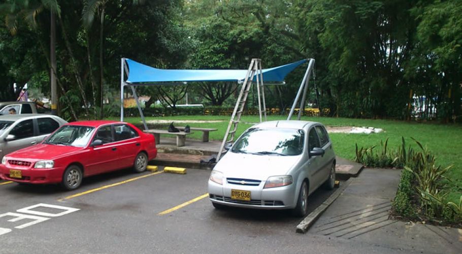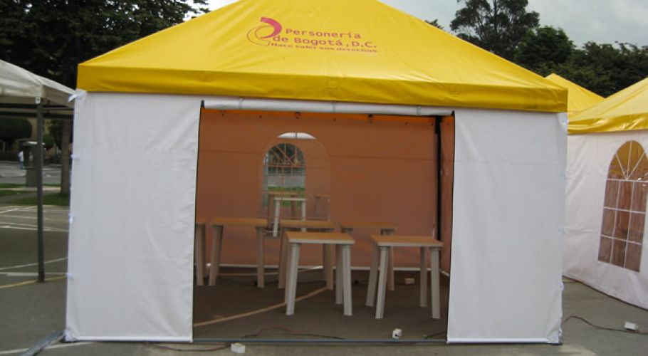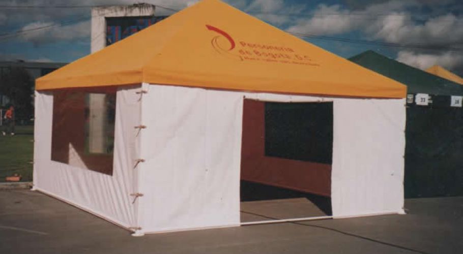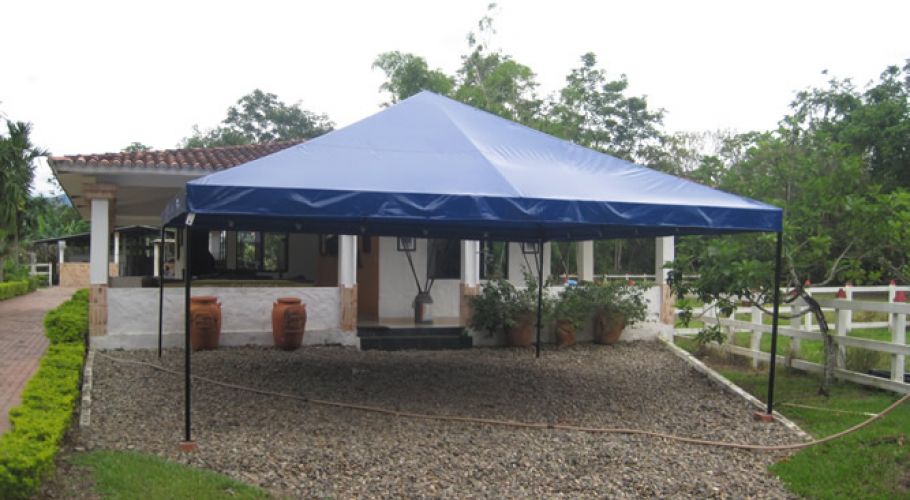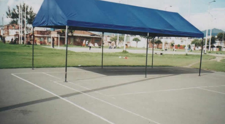 Fabricados: estructura en tubería cuadrada, cerchas en 1” calibre 18, parales de 1”1/2. Toda la estructura va terminada en pintura electroestática. Techo en lona litoral color a escoger, electro sellada, reforzada y ribeteadas. La estructura y la lona varían dependiendo del tamaño y su uso.