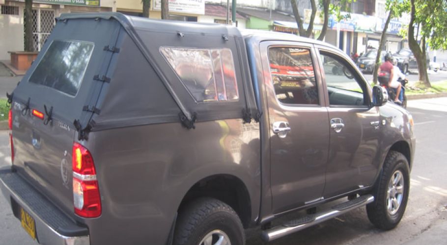 Carpas planas fabricadas en lonas nacionales e importadas, posee una estructura en 100% aluminio. Con una instalación fácil sobre el borde del Platón sin perforar la lámina, con un perfil plástico ajustable de firme presión para un excelente temple, dando así a su camioneta una imagen de lujo y una protección a su carga.